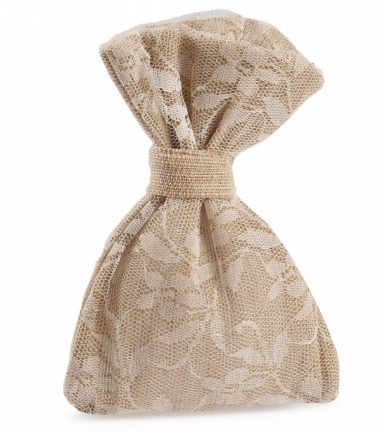 Πουγκί λινό natural με δαντέλα καφέ Ελάχιστος χρόνος παράδοσης: 8-10 εργάσιμες ημέρες. Ελάχιστη ποσότητα: 40τμχ./κωδικό Στην τιμή δεν περιλαμβάνεται ο στολισμός / δέσιμο. 14 x 20 cm