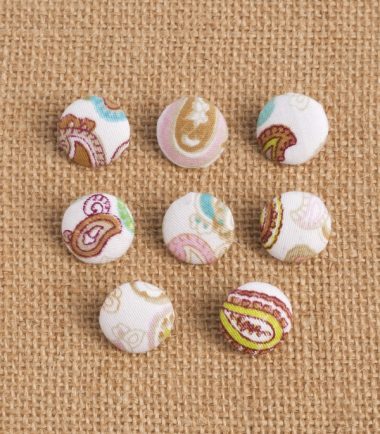 Υφασμάτινα διακοσμητικά κουμπιά με διάμετρο 1.8cm για διάφορες συνθέσεις. Σε εμπριμέ πράσινες & καφέ αποχρώσεις. Κάθε καρτέλα περιέχει 8 τεμάχια. Διάμετρος: 1.8cm