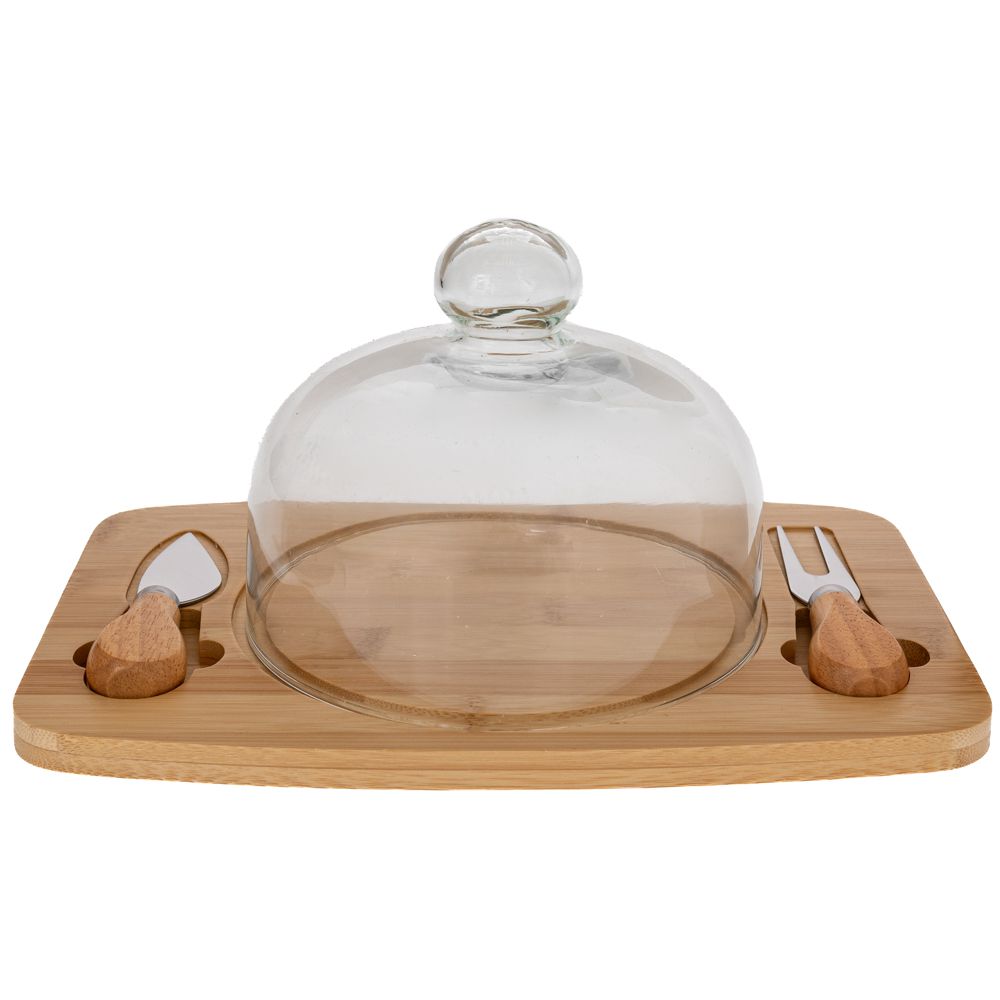 BAMBOO ΔΙΣΚΟΣ ΣΕΡΒΙΡΙΣΜΑΤΟΣ ΤΥΡΙΩΝ ΜΕ ΓΥΑΛΙΝΟ ΚΑΠΑΚΙ AND ΕΞΑΡΤΗΜΑΤΑ 28,5Χ18,5Χ14ΕΚ