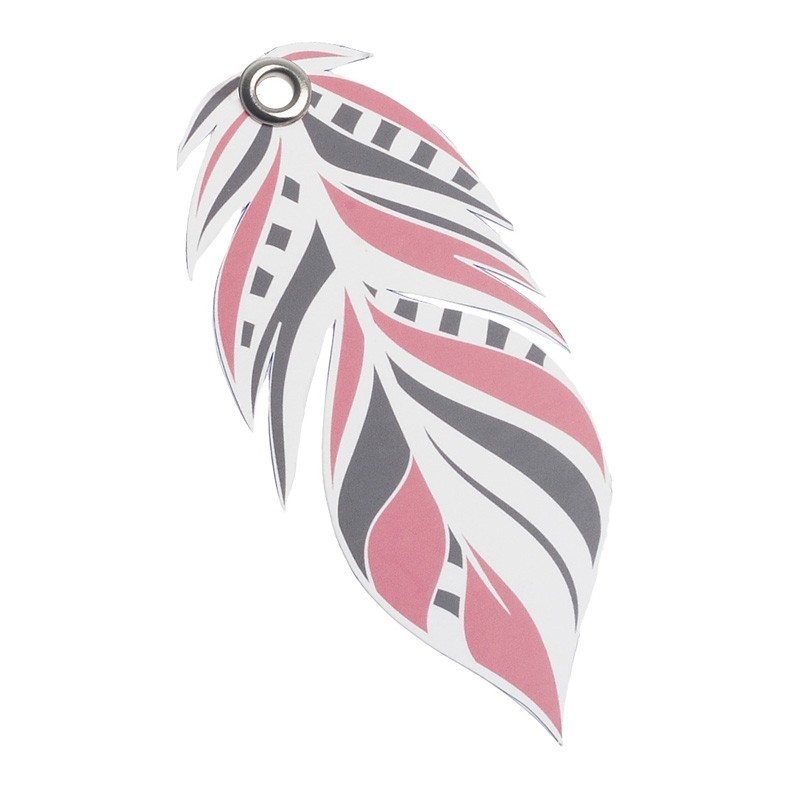 Χάρτινη κρεμαστή ετικέτα σε σχήμα φτερού και ethnic πολύχρωμες αποχρώσεις με βάση λευκή.