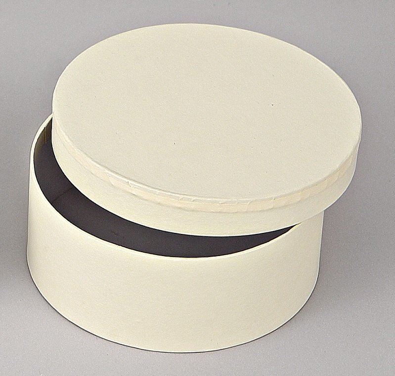 Στρογγυλό χάρτινο κουτί σε χρώμα εκρού. Κομψή πρόταση για συσκευασία, κατάλληλο για δημιουργικές χειροποίητες κατασκευές, ιδανική μπομπονιέρα για ιδιαίτερες βαπτίσεις και εντυπωσιακούς γάμους.