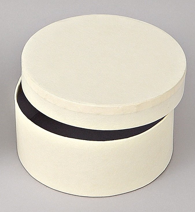 Στρογγυλό χάρτινο κουτί σε χρώμα εκρού. Κομψή πρόταση για συσκευασία, κατάλληλο για δημιουργικές χειροποίητες κατασκευές, ιδανική μπομπονιέρα για ιδιαίτερες βαπτίσεις και εντυπωσιακούς γάμους.