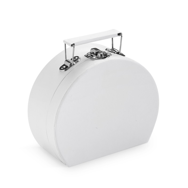 Χάρτινο οβάλ βαλιτσάκι σε λευκό χρώμα. Διάστ.: 15×12,5×6,5cm