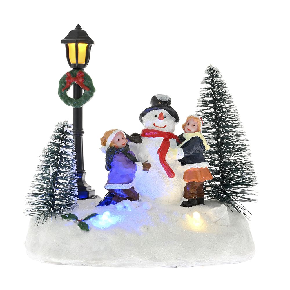 ΧΡΙΣΤΟΥΓΕΝΝΙΑΤΙΚΟ ΣΚΗΝΙΚΟ ME ΧΙΟΝΑΝΘΡΩΠΟ KAI ΠΑΙΔΑΚΙΑ ΜΕ ΦΩΣ 12Χ7Χ12ΕΚ ΜΠΑΤΑΡΙΑΣ