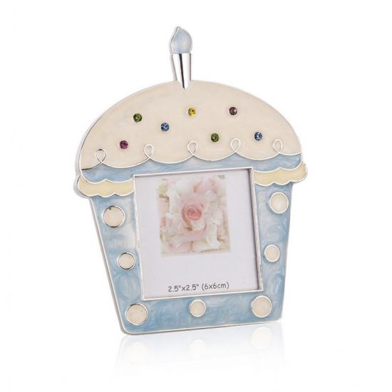 Πορσελάνινη διακοσμητική κορνίζα-φωτογραφοθήκη με σχέδιο cupcake – τούρτα με κεράκι σε αποχρώσεις του σιέλ και του εκρού. Με λεπτομέρειες swarovski. Ιδανικό για διακόσμηση