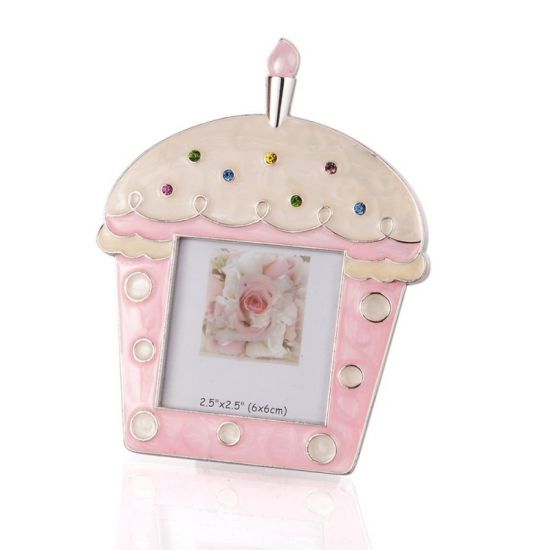 Πορσελάνινη διακοσμητική κορνίζα-φωτογραφοθήκη με σχέδιο cupcake – τούρτα με κεράκι σε αποχρώσεις του ροζ και του εκρού. Με λεπτομέρειες swarovski. Ιδανικό για διακόσμηση