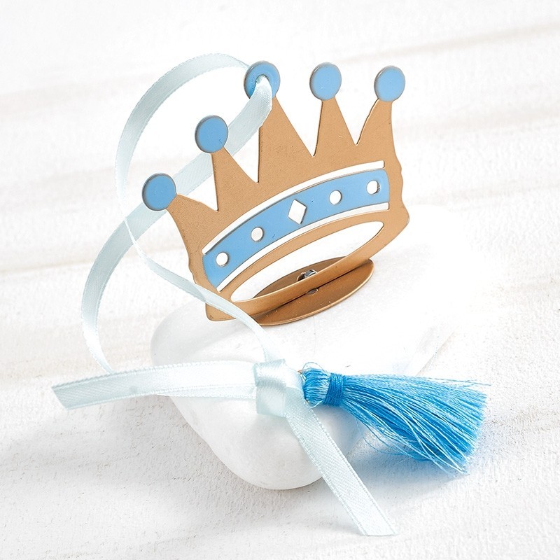 Είναι στολισμένο με χρυσή μεταλλική κορώνα με λεπτομέρειες σιέλ,σατέν κορδέλα και φούντα.