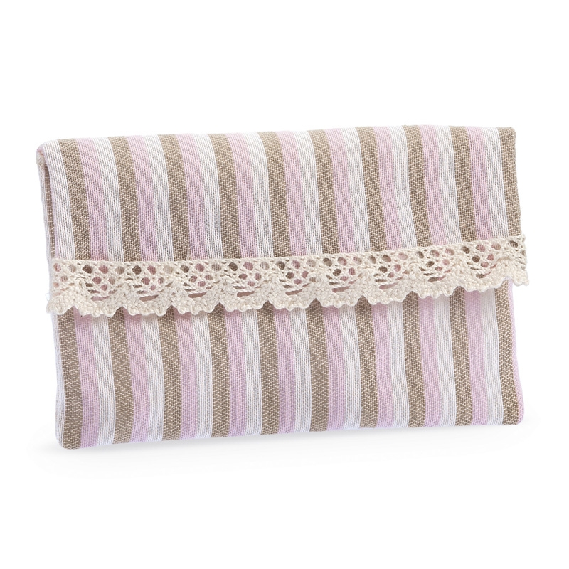 Φάκελος λινός ριγέ ροζ-εκρού-καφέΕλάχιστος χρόνος παράδοσης: 8-10 εργάσιμες ημέρες. Ελάχιστη ποσότητα: 40τμχ./κωδικό Στην τιμή δεν περιλαμβάνεται ο στολισμός / δέσιμο. Διαφορετικές διαστάσεις κατόπιν συνεννόησης.