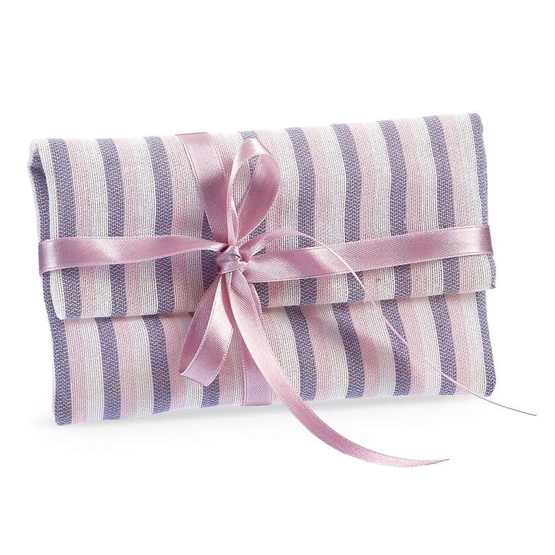 Φάκελος λινός ριγέ λιλά-εκρού-ροζ