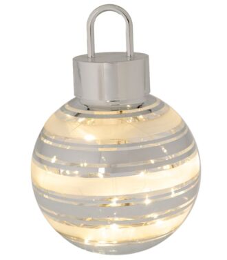 ΛΕΥΚΗ ΓΥΑΛΙΝΗ ΜΠΑΛΑ ΜΕ ΑΣΗΜΙ ΡΙΓΑ ΚΑΙ LED ΦΩΣ Φ12ΕΚ ΜΠΑΤΑΡΙΑΣ 11,00