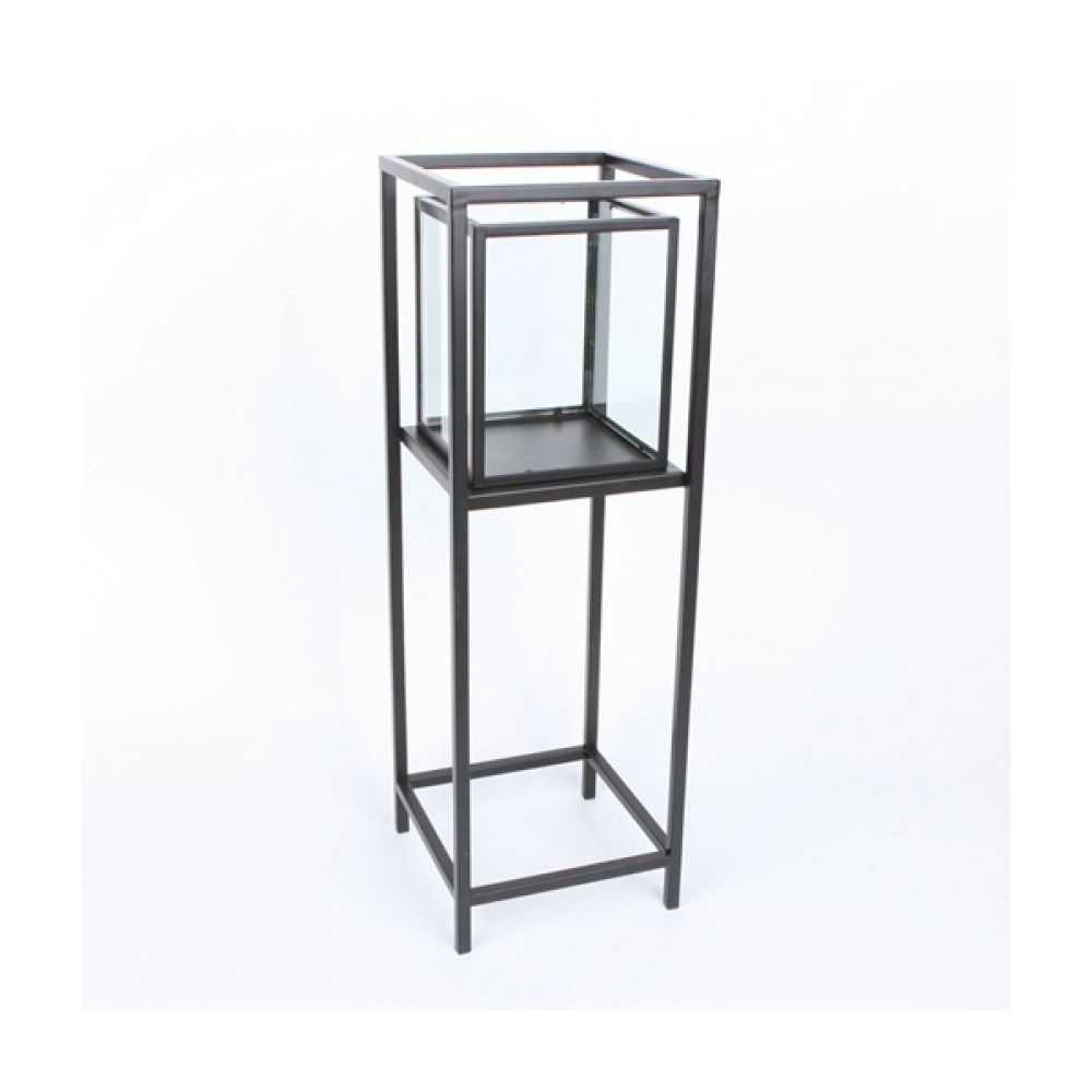 ΓΥΑΛΙΝΟ ΦΑΝΑΡΙ ΣΕ ΜΑΥΡΗ ΜΕΤΑΛΛΙΚΗ ΒΑΣΗ 30x30x100EK (25Χ30) ΓΥΑΛΑ