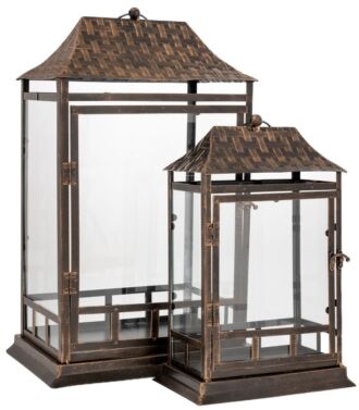 ΣΕΤ 2 ΜΑΥΡΟ ΜΕΤΑΛΛΙΚΟ ΦΑΝΑΡΙ ΜΕ ΔΙΑΤΡΗΤΗ ΟΡΟΦΗ 21,5Χ21,5Χ67,5ΕΚ 16,5Χ16,5Χ52ΕΚ
