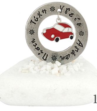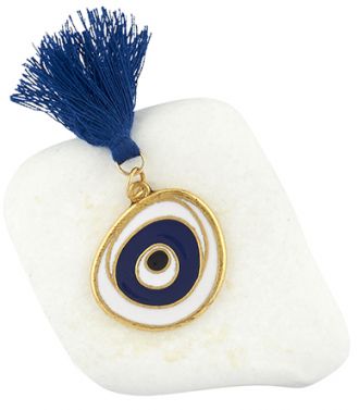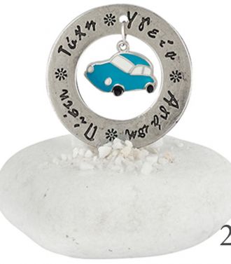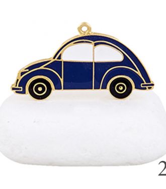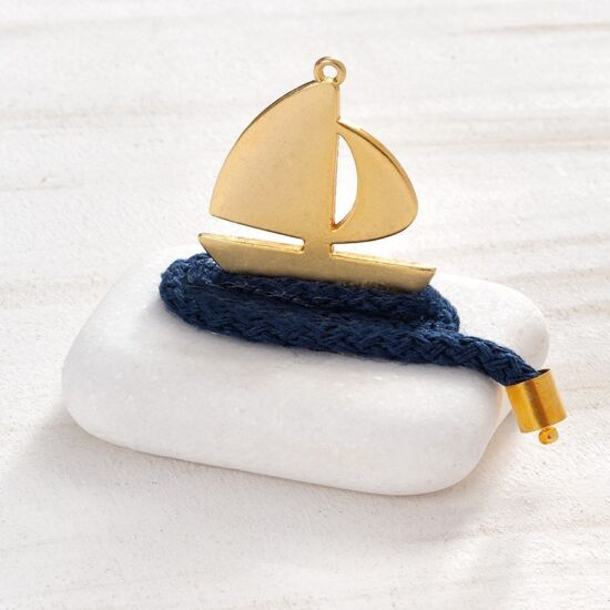 Χειροποίητο διακοσμητικό βότσαλο σε λευκό χρώμα. Είναι στολισμένο με χρυσό καράβι και κορδόνι σε εκρού χρώμα.