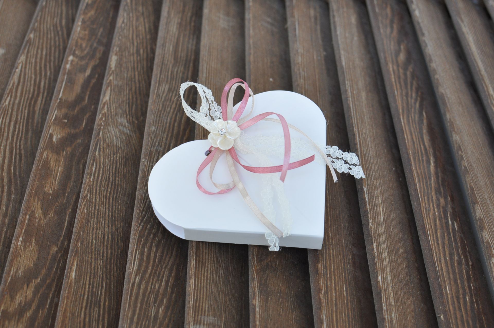 Κερασματάκι κουτάκι σε σχήμα καρδιάς με ανάγλυφα σχέδια, διακοσμημένο με χάντρα Πέρλα.