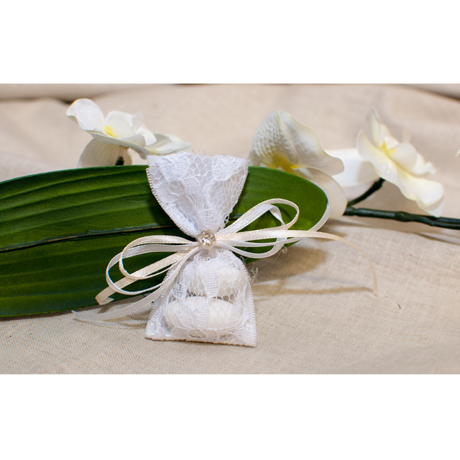 Κερασματάκι Σατέν με Δαντέλα και Λουλούδι Κρυσταλλάκι