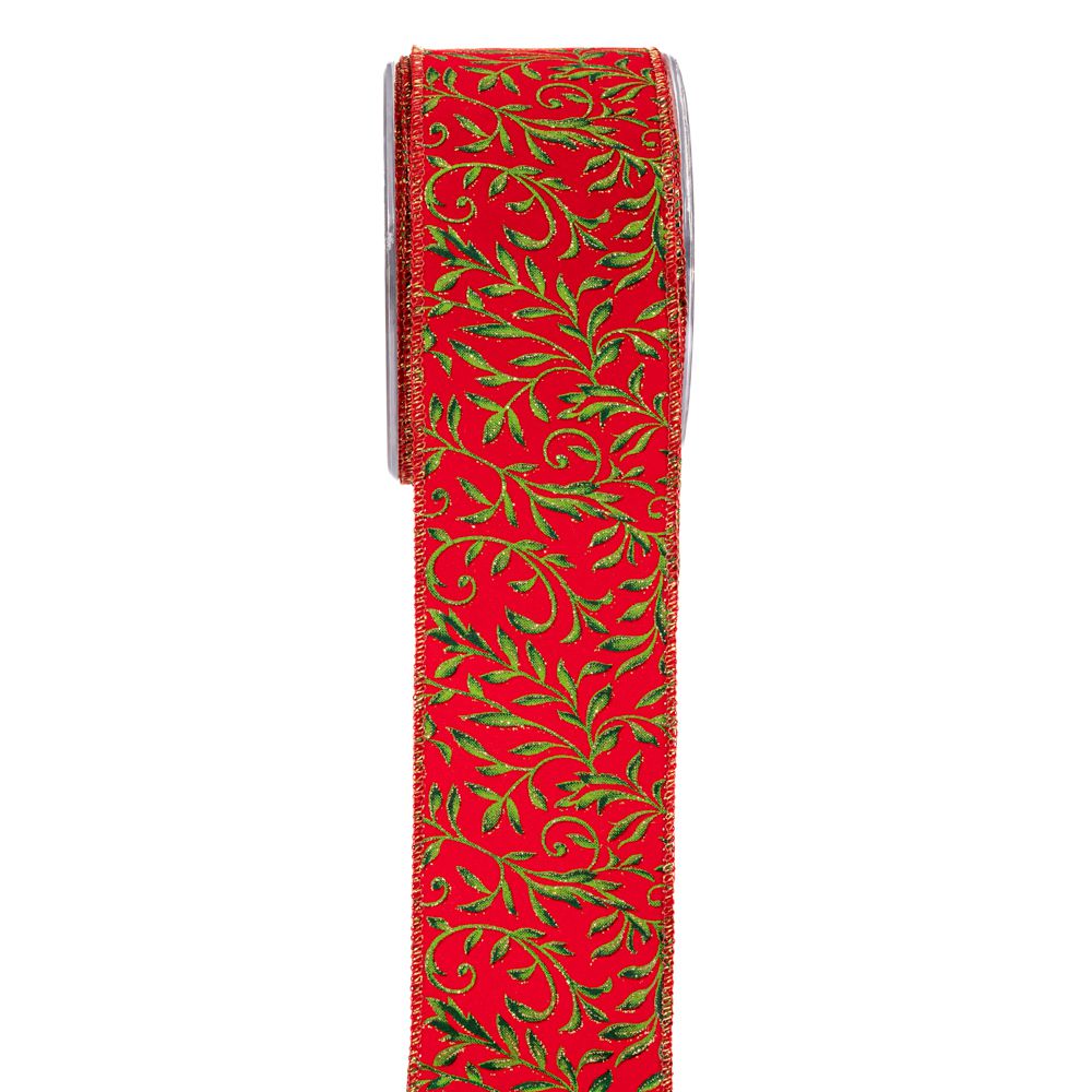 ΚΟΡΔ.VELLUTO CON RAMI 6.7cmX9m ΚΟΚΚΙΝΟ-ΠΡΑΣΙΝΟ