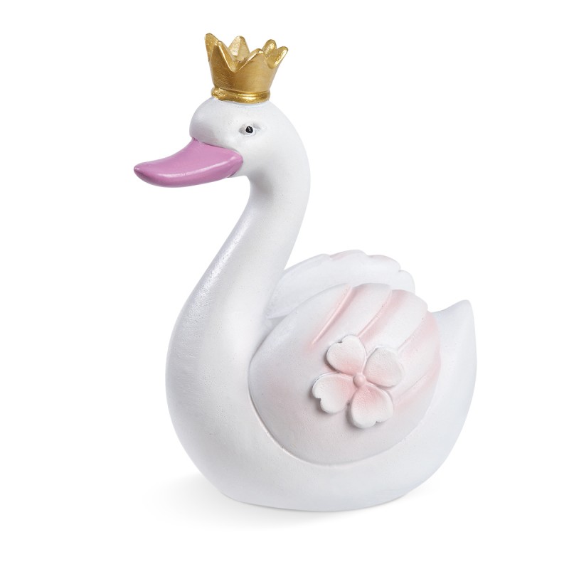 Πολυεστερικός κουμπαράς κύκνος λευκός & ροζ με χρυσή κορώνα.