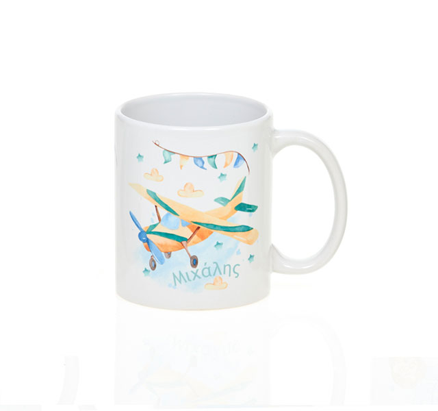 Πορσελάνινη κούπα σε λευκό χρώμα με σχέδιο αεροπλανάκι.