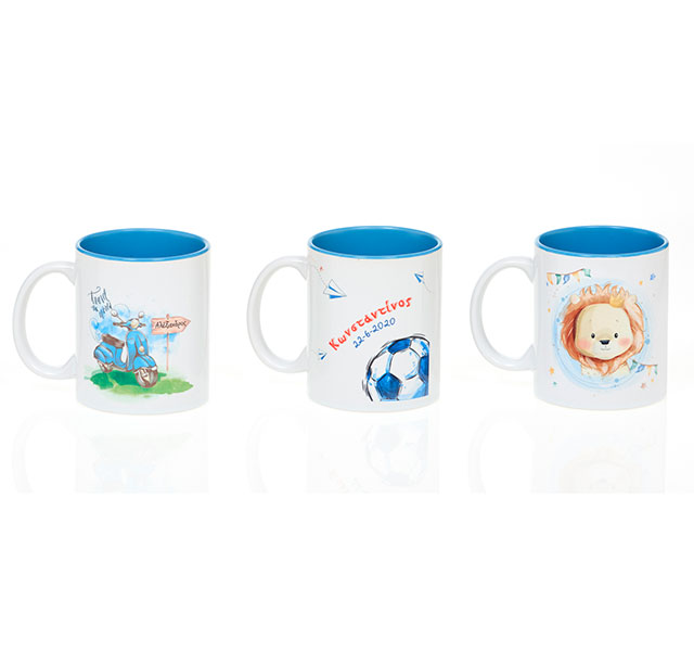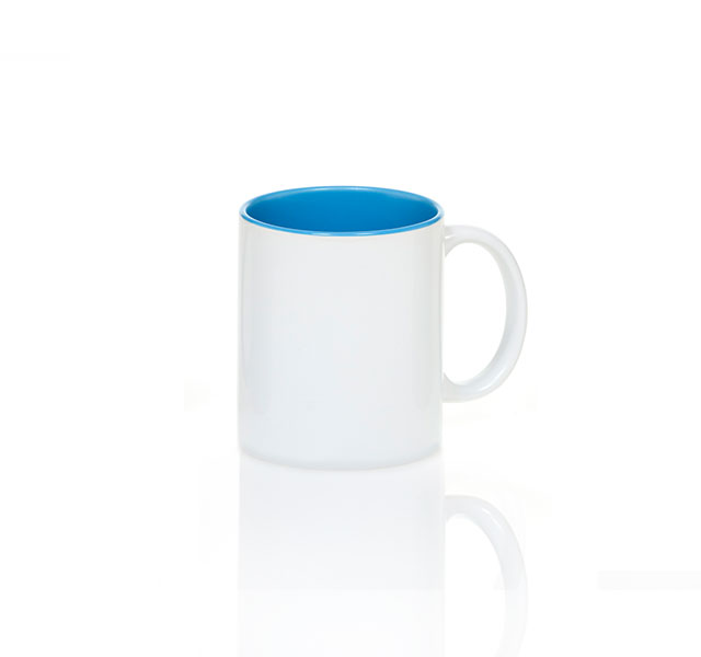 Πορσελάνινη κούπα σε λευκό χρώμα με σιελ εσωτερική πλευρά.