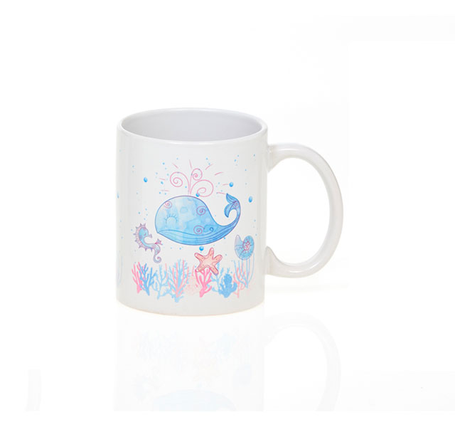 Πορσελάνινη κούπα σε λευκό χρώμα με σχέδιο θάλασσα.