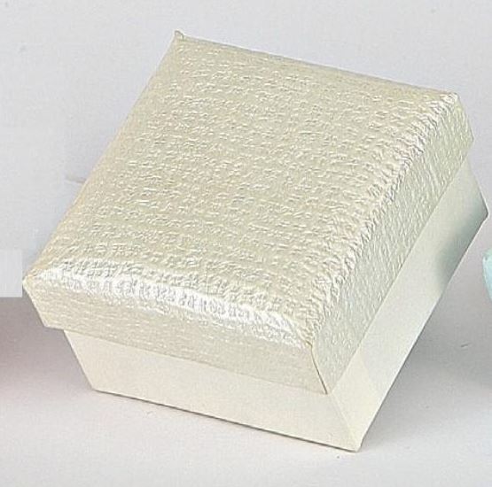 Χάρτινο τετράγωνο κουτί με ανάγλυφο σχέδιο στο καπάκι, σε χρώμα εκρού. Κομψή και πολυτελής πρόταση για συσκευασία, κατάλληλο για δημιουργικές χειροποίητες κατασκευές, ιδανική μπομπονιέρα για ιδιαίτερες βαπτίσεις και εντυπωσιακούς γάμους.