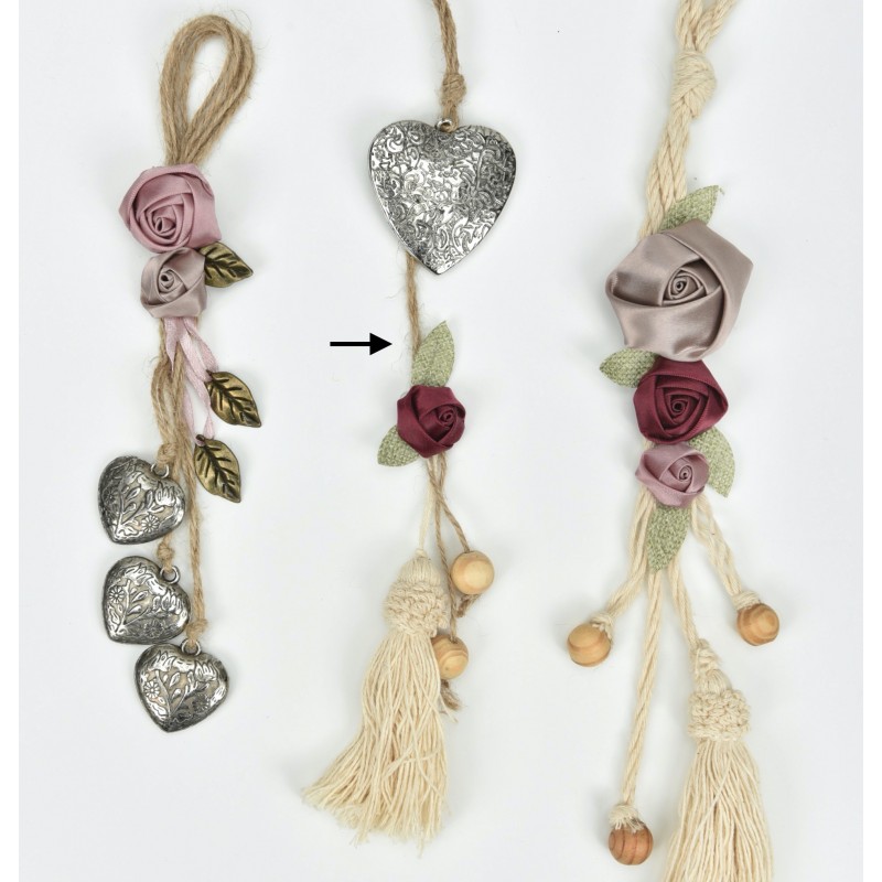Κρεμαστή μπομπονιέρα με μεταλλική καρδιά με φούντα και σατέν λουλούδι