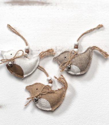 Ξύλινο κρεμαστό διακοσμητικό πουλάκι σε κλαδί. Διακοσμημένο με ταμπέλα “Σας ευχαριστώ”