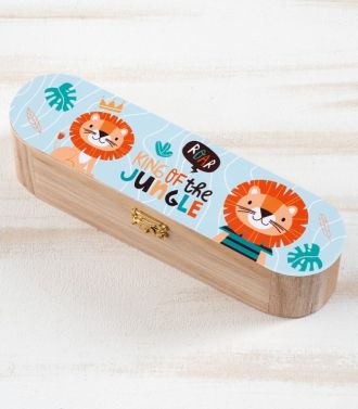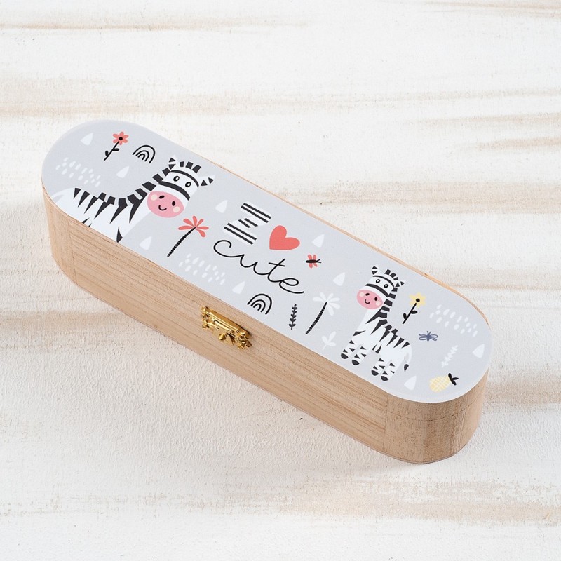 Ξύλινη natural κασετίνα με μεταλλικό κούμπωμα. Είναι διακοσμημένη με αυτοκόλλητο print Ζέβρα.