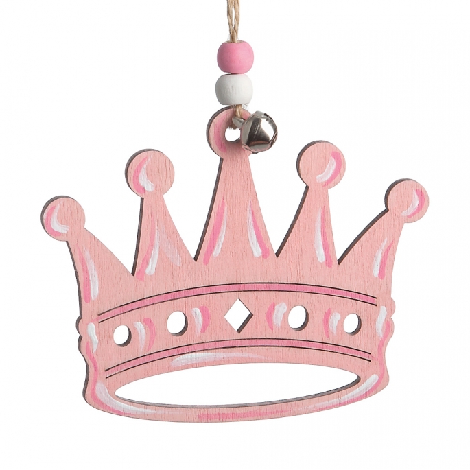 Ξύλινη κρεμαστή κορώνα σε ροζ χρώμα διακοσμημένη με χάντρες και μεταλλικό κουδουνάκι. Ιδανικό για διακόσμηση. Ροζ και στις 2 όψεις.