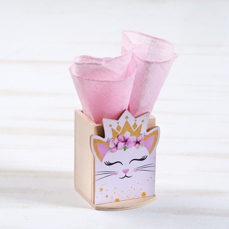 Ξύλινη μολυβοθήκη σε natural χρώμα. Διακοσμημένο με κοπτικό Γάτα.