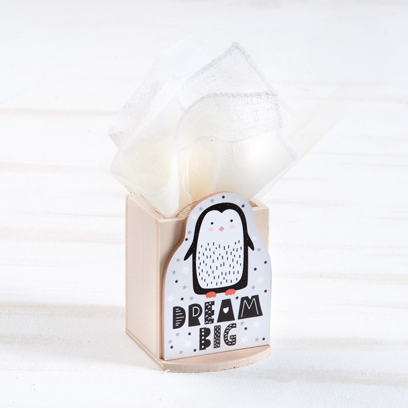 Ξύλινη μολυβοθήκη σε natural χρώμα. Διακοσμημένο με κοπτικό Πιγκουίνος.