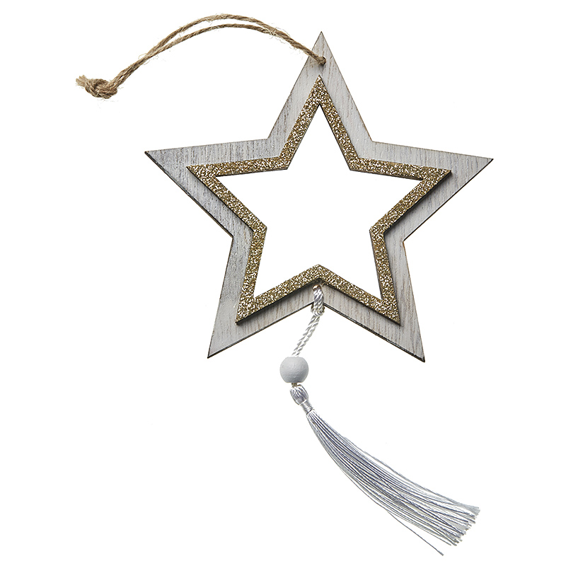 Ξύλινη Κρεμαστό διακοσμητικό Χριστουγεννιάτικο Αστέρι με Φούντα