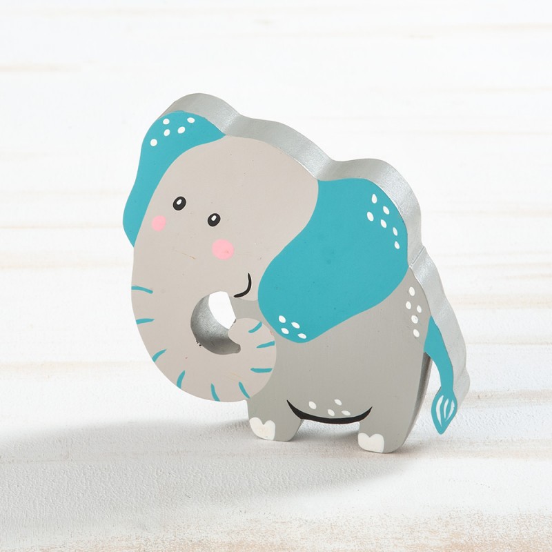 Ξύλινο επιδαπέδιο διακοσμητικό ελέφαντας σε γκρι χρώμα με τιρκουάζ λεπτομέρειες.