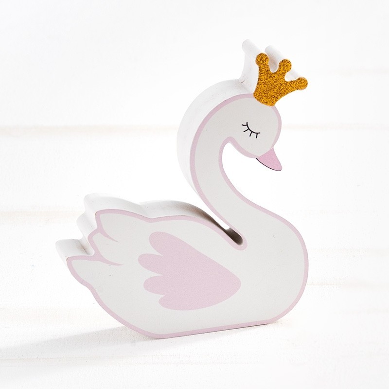 Ξύλινος επιτραπέζιος διακοσμητικός κύκνος σε αποχρώσεις λευκές-ροζ με χρυσή κορώνα. Ιδανικός και για κατασκευές