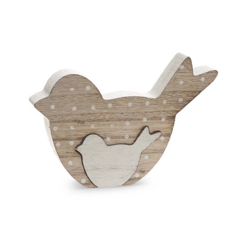 Ξύλινο επιτραπέζιο διακοσμητικό 3D διπλό πουλί σε χρώμα natural με λευκό