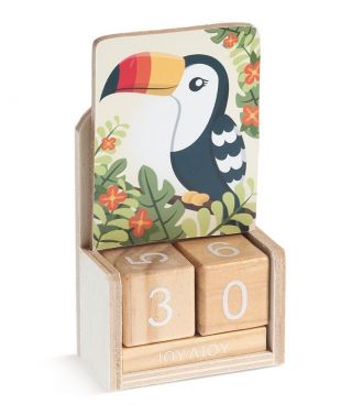 Ξύλινο ημερολόγιο με κύβους σε natural χρώμα. Διακοσμημένο με κοπτικό Ελεφαντάκι.