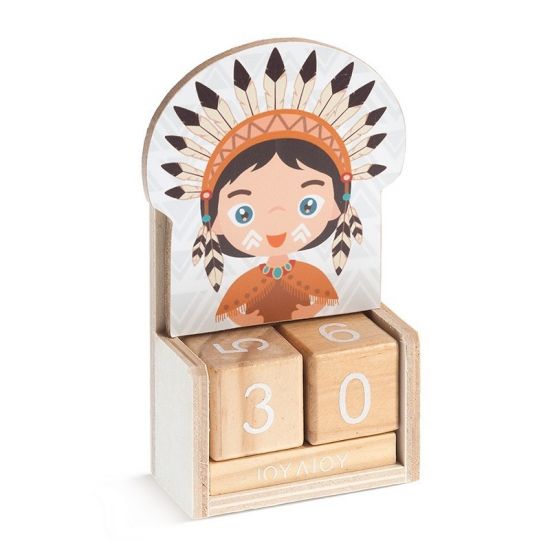 Ξύλινο ημερολόγιο με κύβους σε natural χρώμα. Διακοσμημένο με κοπτικό ινδιάνος.