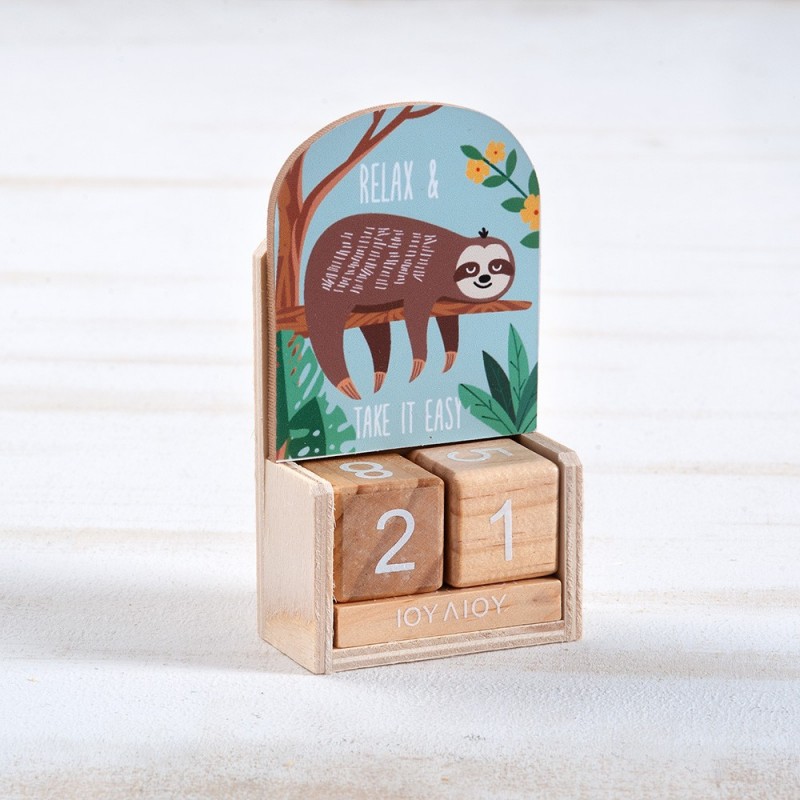 Ξύλινο ημερολόγιο με κύβους σε natural χρώμα. Διακοσμημένο με κοπτικό Βραδύποδας.