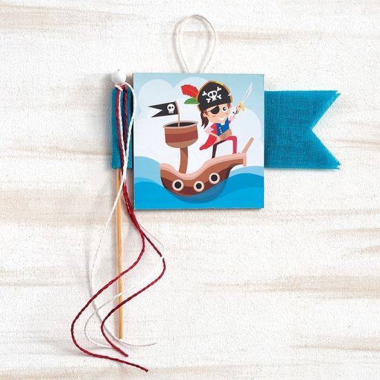 Ξύλινο διακοσμητικό καδράκι πειρατής κρεμαστό με γάζα και κορδόνια.
