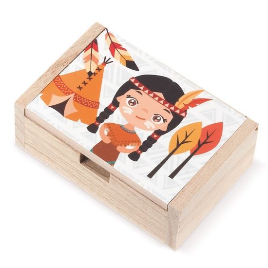 Ξύλινο natural παραλληλόγραμο κουτί. Είναι διακοσμημένο με αυτοκόλλητο print ινδιάνα.