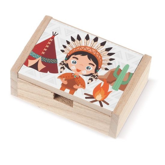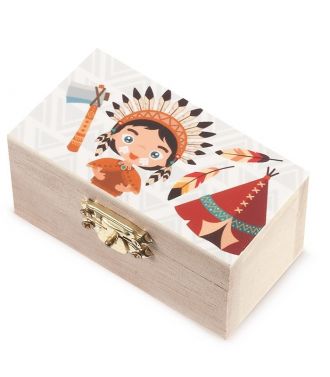 Ξύλινο natural παραλληλόγραμο κουτί. Είναι διακοσμημένο με αυτοκόλλητο print ινδιάνος.