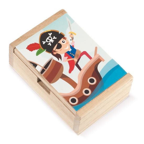 Ξύλινο natural παραλληλόγραμο κουτί. Είναι διακοσμημένο με αυτοκόλλητο print πειρατής.