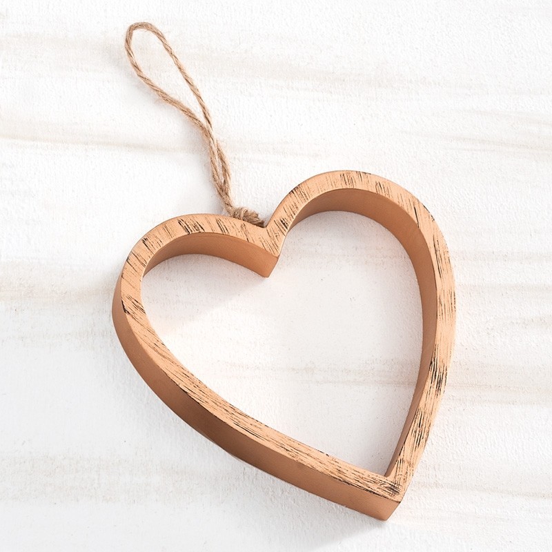Ξύλινη κρεμαστή διακοσμητική καρδιά bronze σε τύπο πλαισίου. Κατάλληλη και για κατασκευές.