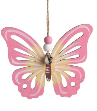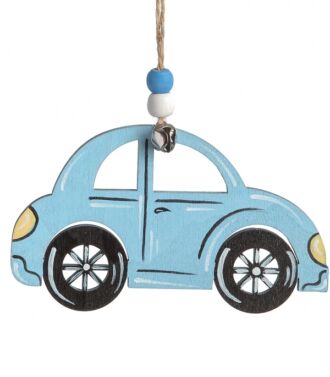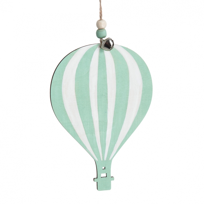 Ξύλινο κρεμαστό αερόστατο με ρίγες βεραμάν και λευκές, διακοσμημένο με χάντρες και μεταλλικό κουδουνάκι. Ιδανικό για διακόσμηση.