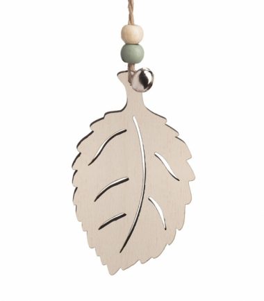 Ξύλινο κρεμαστό φτερό σε αποχρώσεις καφέ και βεραμάν, διακοσμημένο με χάντρες και μεταλλικό κουδουνάκι. Ιδανικό για διακόσμηση. Στη πίσω όψη μόνο natural.