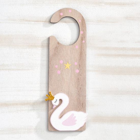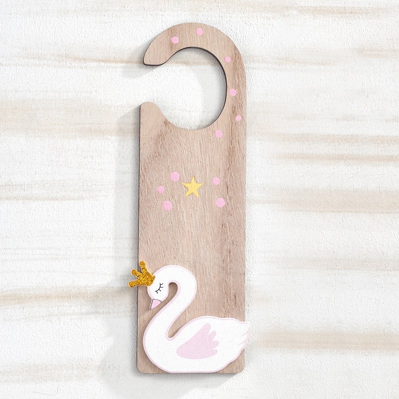 Ξύλινο natural κρεμαστό διακοσμητικό πόρτας με κοπτικό σε σχέδιο κύκνου