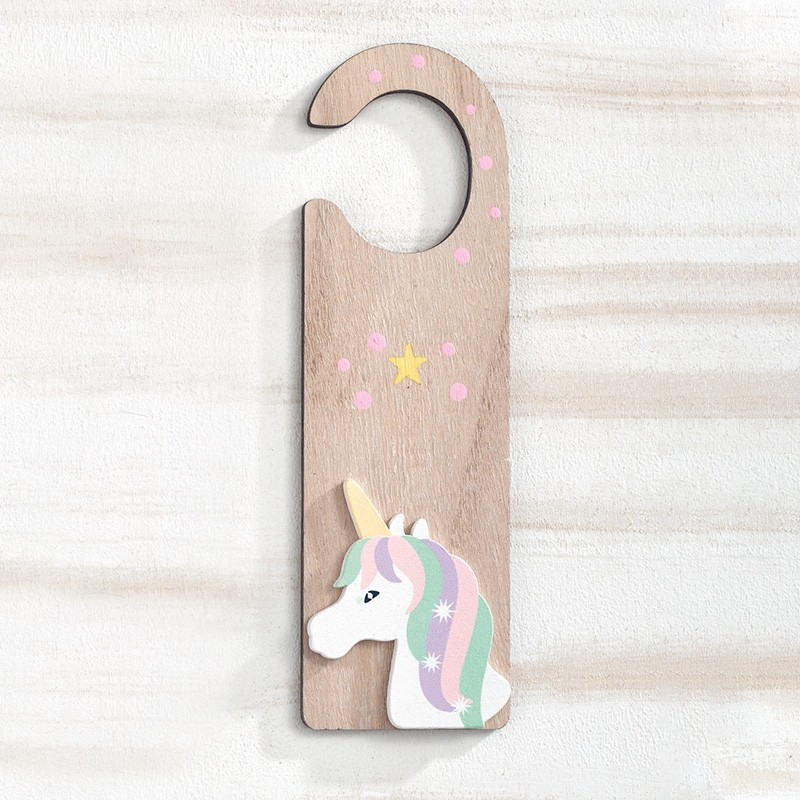 Ξύλινο natural κρεμαστό διακοσμητικό πόρτας με κοπτικό σε σχέδιο μονόκερου