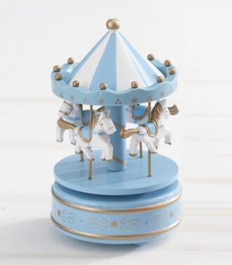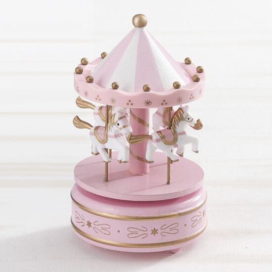 Ξύλινο μουσικό καρουζέλ ροζ-λευκό με αλογάκια. Ιδανικό για διακοσμήσεις και ως δώρo