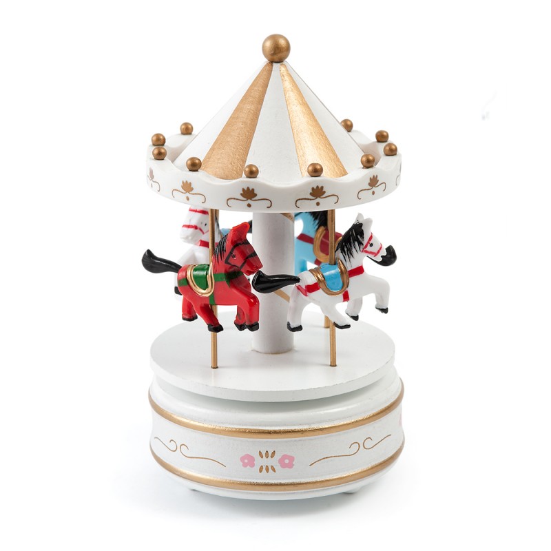 Ξύλινο μουσικό καρουζέλ σε λευκό-χρυσό χρώμα με πολύχρωμα αλογάκια. Ιδανικό για διακοσμήσεις και ως δώρο