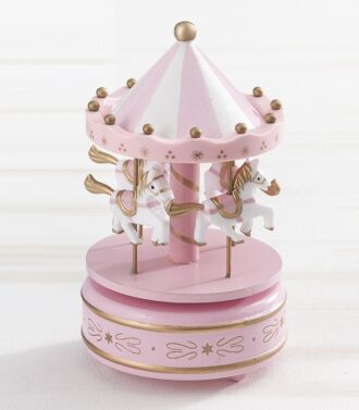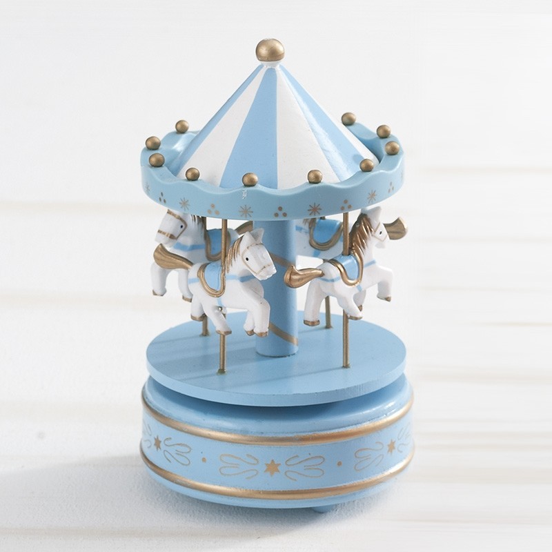 Ξύλινο μουσικό καρουζέλ σιέλ-λευκό με αλογάκια. Ιδανικό για διακοσμήσεις και ως δώρο